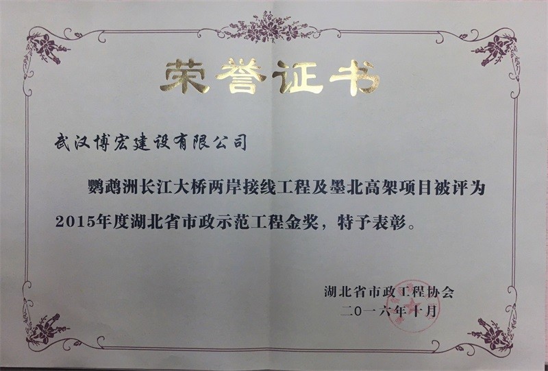 鸚鵡洲長江大橋兩岸接線工程2015年度湖北省市政示范工程金獎(jiǎng)鸚鵡洲接線2015省市政示范工程金獎(jiǎng)