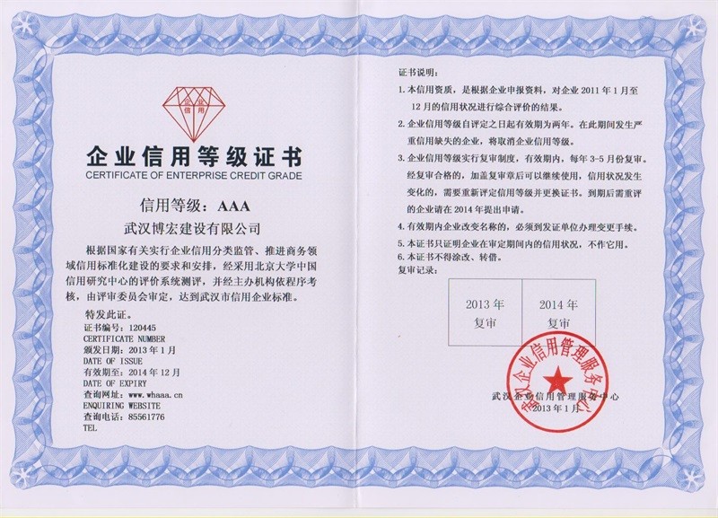 企業(yè)信用等級(jí)證書(shū)AAA